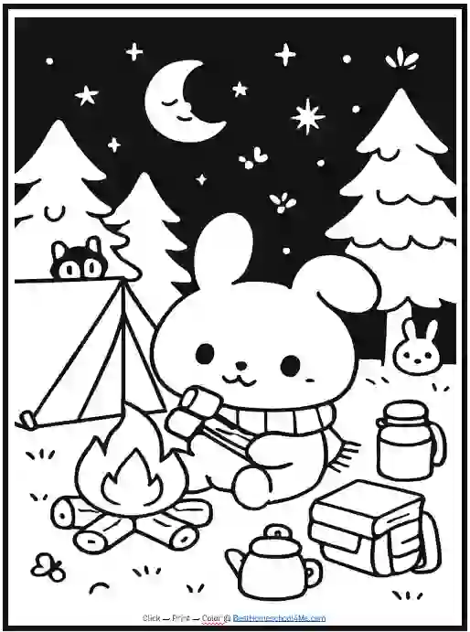 Our free Masyumaro coloring pages are packed with fun, child-friendly scenes like camping, tea parties, school days, winter cabins, and candy land adventures. These printable coloring pages are easy to use, free to download, and designed to keep kids engaged, happy, and creative.